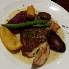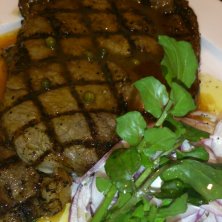 牛リブロースのソテー。でっかーい。黒胡椒にすだちでさっぱり。