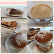 ランチの後のおやつ スウェーデンのこの時期のスイーツ セムラが出てるよねーと IKEAでお茶&おしゃべりタイム セムラは1番手前の、カルダモン入れたパンにクリーム挟んである のんびりお茶してしゃべりまくって 楽しかった🥰