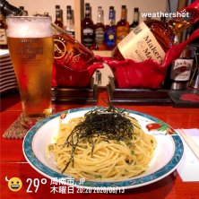 こんばんは〜🌛 今日は久しぶりにこのお店のマスターが作る渋谷まるはち直伝明太子スパゲティ🍝が食べたくなり軽くビール🍺と一緒にいただきます😊💕 明太子と紫蘇の香りがたまらなく絶品で大満足です🤗 お盆だけど明日も仕事なのであまり飲まないようにしなきゃ😅💦