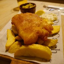 フィッシュ&チップス: 衣がサクサクでうまい!!タルタルもバランスいい!!ロンドン飯のレベルが上がってる!!(((o(*゚▽゚*)o)))