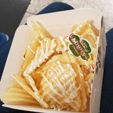 こんばんは(・∀・)ノ 投稿し忘れ写真です。 先月の札幌ドームライブ参戦旅行の帰りに、空港で食べたチョコがけポテチ&ソフトクリーム♪ ポテトチップスは揚げたてなので、オーダーして少々待たされますが、その分美味しいです。