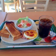 今朝はべーコンエッグチーズ✌️ 朝モス率高し・・・ど〜ん(笑)✌️