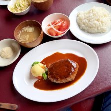 ポークステーキ(デミグラス) ポテト、人参ソテー、ブロッコリー クリームコロッケ コールスロー アオサと長ネギの味噌汁 白飯