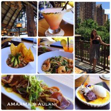 ディズニーリゾート、アウラ二の中にあるダイニング 'AMA'AMA でランチをしてきました✨ 食べたいものをオーダーしたら昨年とほとんど同じものを注文していた❗️ *マグロのたたき *海老のサルサ *海老入りブガティーニ *レモン風味のカタナーラ カクテルはマルガリータ、マンハッタン、リリコイなんとか…あとはなに飲んだか不明の酔っ払いです(^^;;