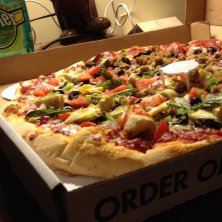 ピザ〜アメリカンサイズ〜 見ただけで お腹いっぱいになる (キ▼д▼;)トホホ・・ コオリナって本当レストランがないわぁ。 AULANIも2つしかレストランないし〜 こんなジャンクなものばかり食べてる感じがする〜