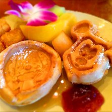 at makahiki キャラブレ~~ 日本から予約していきました お子様に混じってミッキーさんを はじめとするキャラクターと撮影♪ お食事はビュッフェ形式 こちらはエッグベネディクト★ お値段は…35USD