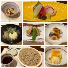 長月会席 いちじく酒粕クリーム会え 吸物 海老真丈 二種盛り造り いちじくの天麩羅 南瓜 青唐 いちじくと秋鯖の酢締め もり蕎麦 アイスクリームプリンキャラメルソース 酒蔵で晩御飯、車で来たので大吟醸福寿は買って帰ります。