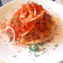 ムール貝のリゾット。ギリシャ料理らしくレモンの酸味たっぷりです。