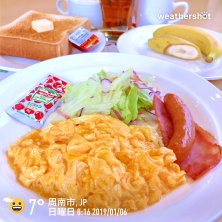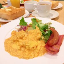 台風が近づいてるんで家でじっとしておこうと思ってたんですが…先輩に誘われてガストのモーニング(*^^*) スクランブルエッグのセットをいただきます♬ 雨も風もだんだん強くなって来ました… 皆さん気を付けましょうね…