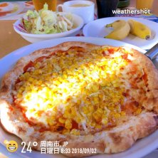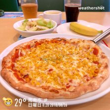 おはようございます〜☀️ 今日はガストでモーニング‼️🍽 無性にビザ🍕が食べたかったのでモーニングのマヨコーンピザセット🌽🍕にミニサラダ🥗とバナナ🍌を付けていただきます😊💕 今日は厨房の準備が遅れてたみたいで注文したピザ🍕やスープバーが遅く出来上がりました😵💦