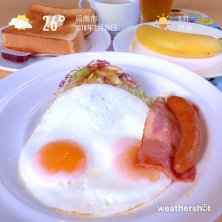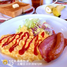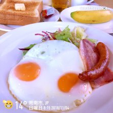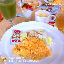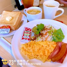 おはようございます〜☁️ 今日は毎週恒例‼️先輩達とガストでモーニング😊💕 私は目玉焼き&ベーコンソーセージセット🍳🥓をいただきました💖 台風🌀🌪が近づいているのに今日も朝からワイワイやってます😅💦