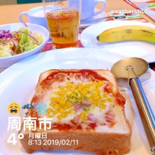 おはようございます〜☔️㊗️🎌 今日も先輩達👴とガストでモーニング☕️🍞‼️ 私はコーンたっぷりピザトーストセット🍕🌽にミニサラダ🥗とバナナ🍌を付けていただきます🤗 今日も約束してるのに先輩達👴が来る気配が全く感じられません😭💦