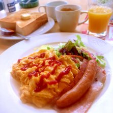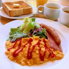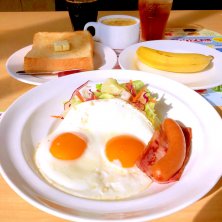 おはようございます〜🌤 今日はガストでモーニング‼️🍽 目玉焼き&ベーコンソーセージセット🍳🥓🍞をいただきましたよ😊💕 知り合いのお父さんが亡くなられたのでこの後葬儀に参列して来ます。