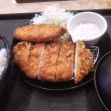 松のやの期間限定ロースカツ&サーモンフライ定食。 サーモンフライって意外とお目にかからないよね。 オジサン的には「しゃけフライ」の方がしっくりくるけど(「さけ」じゃなくて「しゃけ」これ重要)