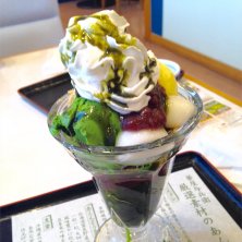 和風パフェ♪ もちもちの白玉、抹茶アイスにたっぷりのあずき。裏側にはわらびもちも!見えてないけど…(^_^;) あまり和パフェは食べないんだけど、たまにはいいかも(*^^*) 久しぶりに食べたら美味しかった〜♥︎