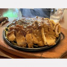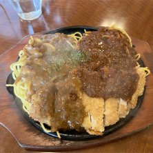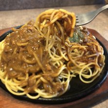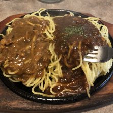 ミートソースとカレーソースのダブル‼️ 濃厚で美味しかったです😊 ジュージューいいながら熱せられた鉄板に乗ってくるのもいいですね👍