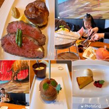 奥のステキなお席を用意して下さいました。 (撮り忘れ満載ですが)😆 結構かぶらずにそれぞれマイコースになりました。 息子は150gフィレ 私は200gサーロイン 夫とお嫁ちゃんはローストビーフ150g オードブルやお料理もそれぞれ楽しみました。 孫ちゃんは、炭焼きハンバーグとフルーツ お嫁ちゃんが大喜びしてくれました。 イヤイヤ期真っ只中で😓 アウターも靴下も靴も『ノーノーノーノー』🙅♀️。 泣くし、騒ぐし💦 でもお店の方々は皆さん優しい。。 本当にありがとうございました😘。