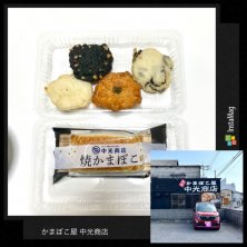 仕事で牛窓へ行ったので 中光商店の かまぼこ を買いました キクラゲ・チーズ・イカ墨・生姜 などなど😁