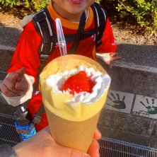 息子と2人でサッカー観戦⚽️ キッチンカーでいちごのクレープ食べたんだけど、いちごはみんな息子に食べられ、生クリームじゃなくてホイップで甘すぎて、なかなか厳しかった。笑 歳とったな、私。