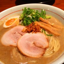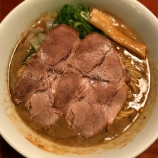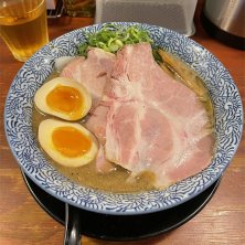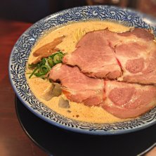 濃厚醤油鶏豚骨 チャーシュー増し☆ レギュラーメニュー化した濃厚醤油鶏豚骨!高粘度の濃厚鶏豚骨にコクと風味が抜群な醤油が合わさった旨し一杯! 超濃厚なのについつい完飲してしまう旨味たっぷりのスープともっちり麺が絶妙!しっかりした味わいの塩チャーシューも最高♡\̏(º̻∇º̻)/̋