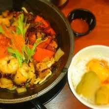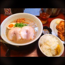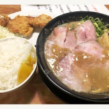 雨の中久々の頑固麺 ホントは別のとこ狙いでしたが、日曜休だと⁉︎(´Д` ) ・特製鶏豚骨(フライドオニオン、味玉半個、頑固ソース付) ・唐揚げセット 丼の右にあるのが頑固ソース スープの増粘剤の役割ですが、元々天一ばりのこってり濃厚スープにいきなり全量投入するか、ごはん投入前に全量投入+黒胡椒で「濃厚鶏豚骨リゾット」にするもありでしょう。 辛味噌使うのもありかな? ソテー&フライドオニオンと濃厚クリーミィな鶏豚骨スープで甘みとコクは強いけど、味にメリハリ出すならテーブル調味料を活用しましょ