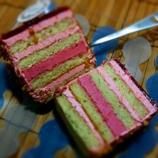 続いて,,また,,,デザート(^^;) 「ちょっと早いけど…」っと同僚からの誕生日ケーキのプレゼント♪ 《パリドール凱旋門》 わぁぁ♪きれ~い☆☆ ピスタチオ生地にラズベリーのクリーム&ムース&ジャム(だと思う…) そして側面はナッツがビッシリ!! 美味しかったよ~♪♪ サンキュ──ヾ(*ˊ∀`*)ノ──♪