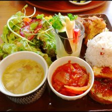 今日のランチ 長久手のルシッカにて先輩とランチしてきました♡♡ お野菜たっぷりで美味しい꒰*´∀`*꒱ お肉はなしのヘルシープレートなのにお腹いっぱいになりました♪