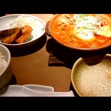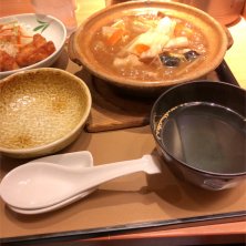 豚と白菜のあんかけ鍋 グツグツいうてます〜(^ ^) 寒いので温まって帰ろう。