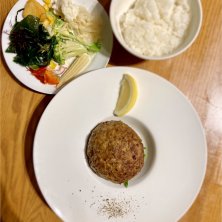 【岩塩&レモンのハンバーグステーキ】 西新宿移転後3回目の金曜日ランチ♪ ちょっと美味しいものが食べたくて イタリアンワインレストランVivoへ 早速自家製のハンバーグステーキをオーダー ランチタイムはサラダ&フライドポテト&飲み物のビュッフェ付で大変お得〜♪ 良いお店を見つけたので緊急事態宣言が明けたら会社帰りにワインも飲みたいな🍷 その時間まで仕事が終わればの話だけど それにしても仕事が終わらなくて10時まで残業… 10月からは簡単な仕事は若手社員に振るなど業務改善しなきゃな…😅