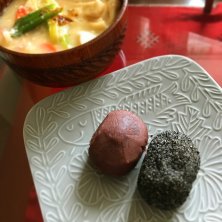 漉し餡と胡麻のぼた餅╰(*´︶`*)╯♡ 豚汁と一緒に食べるのが我が家流 暖まります!