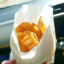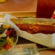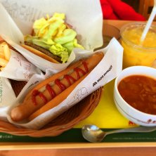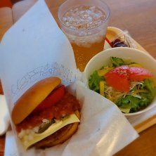 息子、モスデビュー。ワイワイドッグセット¥620を頼んでみました。「半分にカットして提供」とあったけど、ドーンとそのまま出てきたよ^_^;ちょっとかじってみたけど、スモーキーなウィンナーで子ども向け?なのか疑問。高いし、マックのハッピーセットの方がいいかなと思いました。私は久々テリヤキバーガー。