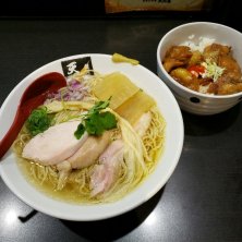超純水採麺 天国屋@成瀬にて、限定のいろんな鮮魚らーめん(真鯛・スズキ・白子のせ丼付き)。 閉店・移転へという衝撃的な告知後、営業再開して翌日のこの日は限定で鮮魚麺。全身に染み渡る様な優しいスープのかけラーメンに、贅沢な漬けの載った丼はスープ茶漬けで😋 新たな出発に向け、ぜひ応援したくなる旨々の一杯。