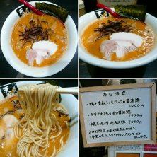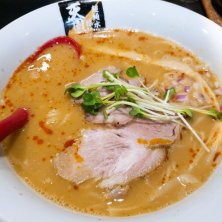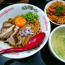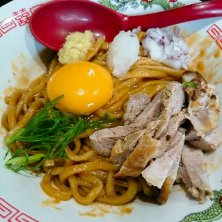 超純水採麺 天国屋@成瀬にて、限定の味噌醤油脂そば(スープ付)。 今日は肌寒かったため、ゴールデンキィウイの冷やし麺は残念ながら中止。先週、昨日の脂そばの変化型で、マルキン醤油、味噌、コチュジャン等をブレンドしたタレで炒めた麺に薬味、チャーシュー、卵黄を混ぜ混ぜ。生姜が風味良く全体を引き締めます。スープも旨くてお替りしたいくらい。