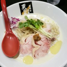 超純水採麺 天国屋@成瀬にて、限定の町田中華そば 鶏の極み〜温故知新〜 町田盛り。 先週の最強ラーメンFes. のコラボ裏メニューを一番いちばんでいただいたら、表メニューも食べたくなりその足で天国屋へ。先週とは逆の裏→表の流れ(笑)。コチラは繊細な味だけに店舗の丼でいただくとこの一杯の狙いが更にクリアに感じられます。