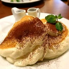 ティラミスパンケーキ♡ ふわとろ〜!でした(*^^*) 娘にもいっぱいかまってもらって、優しいお姉さん、お兄さん店員ばかりでした♡ 最近テレビで紹介されたばっかりみたいで、すごい行列出来てた‥カフェタイム直前に入店してた私は並ばずに入れたよ〜、良かったf^_^;) マスカルポーネの味を期待してたんだけど、 卵の味が強くて、少し予想外! 甘さ控え目だから、メープルはかけて食べるべし◎