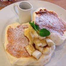 話題のスプーンで食べるパンケーキ。通常店に入ってから1時間位待ちます。(出来上がりまで)メディアに出てからは混んでるって言われてたけど、結構すぐ席につけた。ホントにふわふわでスフレみたいだけど、それとも違う。時間に余裕があれば行くのも良いかな。美味しい。★★★★☆
