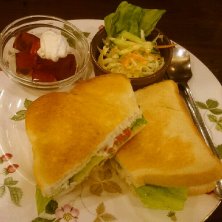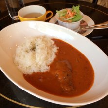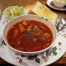 ボルシチのドリンク付きセット 牛肉が柔らかくて美味しかったです❣️ ビーフシチューやクリームシチューもありました 店内にクラシックなハーレーが飾ってありました! ロックが流れてるカッコいいカフェでした😄