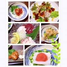 昨日の夜ごはん 昨日は久しぶりの居酒屋飲みでした❣️ いろいろ食べて飲んで楽しかった〜o(>◡<)o❤️