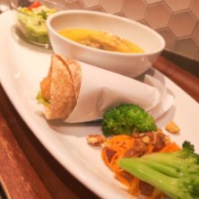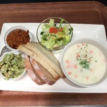 初めて食べるサンドイッチプレート。 具は6種くらいから2つ選ぶのだが、今日選んだバジルチキンとソイキーマカレーは両方美味かった。ソイキーマは肉入ってるようだった。問題は挟みにくいこと。結局交互に食べた。 クラムチャウダーは薄くて牛乳みたいでイマイチ。 でもトータルでは高評価