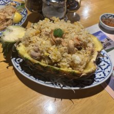先日、レッドバロンでバイクを買ったら、ここナムチャイで使えるクーポンを貰った。知らなかったけど同資本らしい。 ということで今日はクーポン使ってタイ🇹🇭料理。写真はパイナップルチャーハン。