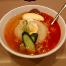 「盛岡冷麺」 初めて利用したお店だったので、中辛を頼みましたが、全く辛くありません。 むしろ麺が甘く感じて辛いのが苦手な自分でももう少し辛味の欲しいところでした。