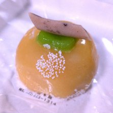 琥珀羹 黄金色に輝く錦玉に大黒寺納豆が含まれたとても美しいお菓子です。正直なところ、大黒寺納豆の癖のある味わいの良さが良くわからないのですが、錦玉部分はとても美味しいです。