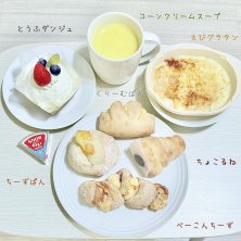晩ご飯😃 アライコーヒーのパン😋 えびグラタン&コーンクリームスープ😋 シェ・イルのとうふダンジュ😋