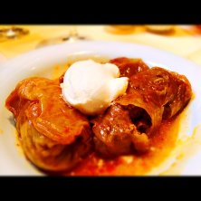 昨年仕事で知り合ったセルビア人の友人がウイーンに来てくれて、郷土料理のお店に連れて行ってくれました。 ✴︎セルビア風ロールキャベツ 上に乗ってるのはサワークリームです。パプリカやその他スパイスで味つけしてあるそうで、中には挽肉とお米が入ってます。美味(*^^*)