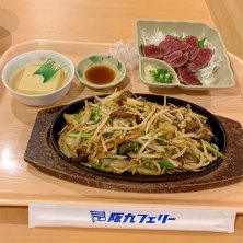 阪九フェリーのレストラン 数量限定の「鉄板野菜炒め」 いつもの「ホルモン鉄板」がなかったため、今回初めて注文