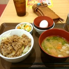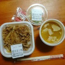 晩ごはん♪ 牛丼ライトと味噌汁セット