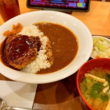 デミハンバーグカレーと味噌汁おしんこセット。