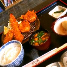 ミックスフライA定食☆ 大エビフライ。ヒレカツ。カニクリームコロッケ。メンチカツ。 いろんなものが食べれて幸せでしたー!!