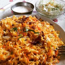 2015年ビリヤニスト活動第10弾は、インドカレーの聖地(?)西葛西で、『ムスカン』のランチ「チキンビリヤニセット」(950円)。カラフルな外見の中にスパイスで味付けされたライスが隠れています。ライタ、サラダ、ソフトドリンク付き。ライスの香りの余韻がグッド。カレーが欲しい(^^;