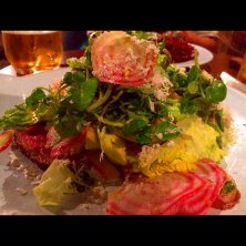 イギリスのカリスマイケメン(?)シェフ、ジェイミー・オリバープロデュースのお店でランチ。ローストビーフサラダです。ホースラディッシュのきいたドレッシングが美味。